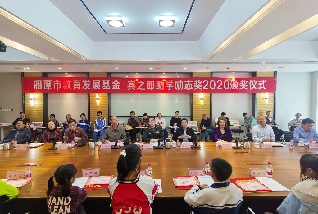 湘潭市政協副主席周佩珞宣讀《關于表彰2020年湘潭市教育發展基金·賓之郎助學勵志獎獲獎學生通報》,2020年,共有349名同學獲得“賓之郎·助學勵志獎”表彰獎勵。他表示,希望獲獎同學以堅強的意志,砥礪奮斗,處逆境而立志成才;也希望廣大中小學生以獲獎學生為榜樣,樹立遠大理想,發奮學習,做有理想、有志向、有擔當的新時代好少年,為實現中華民族偉大復興而拼搏奮進。