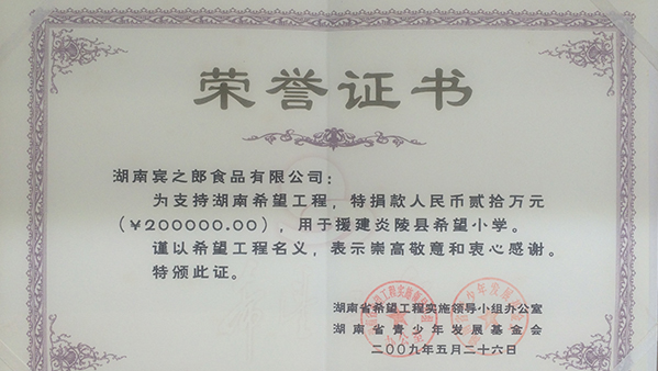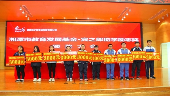 “賓之郎·助學勵志獎”是湖南賓之郎食品科技有限公司實現“企業發展、員工幸福、社會和諧”企業價值觀所設立的獎項。致力于解決優秀學子因家庭貧困而不能完成學業的困難,幫助和鼓勵他(她)們奮發圖強,通過學習改變命運,構筑美麗人生。