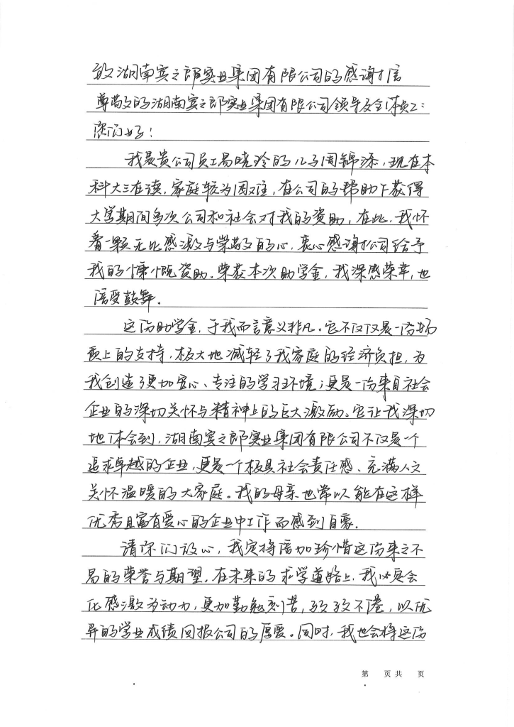 雖然往屆學子的感謝信未能在現場集中展示,但感恩之情卻在現場溫暖流淌。現就讀大三的周錦添同學在信中寫道:"這份助學金不僅僅是一份物質支持,更是一份深切關懷與精神激勵。賓之郎不僅是一個追求卓越的企業,更是一個充滿人文關懷溫暖的大家庭。"這些真摯的感言,成為助學活動最珍貴的回響。