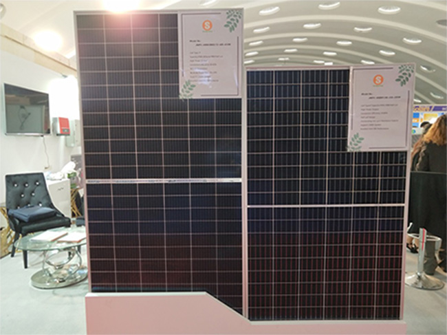 此次展會,陽光能源品牌展出三款組件,分別為單晶雙玻半片9BB-410W組件、單晶常規(guī)半片5BB-330W組件、多晶72片330W組件和多晶60片275W組件,其中,多晶275W和330W組件由于性價(jià)比高,在當(dāng)?shù)厮孟到y(tǒng)和農(nóng)業(yè)項(xiàng)目中應(yīng)用廣泛,引起熱銷浪潮。另外,單晶雙玻半片9BB-410W組件也受到很多訪客的關(guān)注和咨詢。