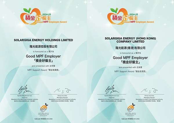 2025年11月25日,香港強(qiáng)制性公積金計(jì)劃管理局(MPFA)公布了2025年度“積金好雇主”獲獎名單,陽光能源控股有限公司(以下簡稱“陽光能源”)及旗下陽光能源(香港)有限公司雙雙獲得2025年度“積金好雇主”稱號與“積金推廣獎”榮譽(yù)。