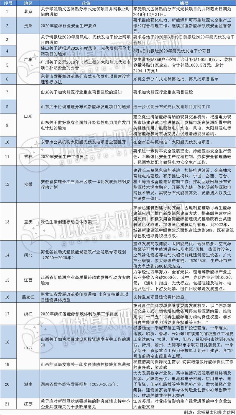 除了平價項目,各地方政府也積極推進2020年分布式光伏發(fā)展。