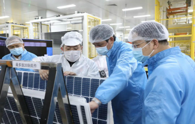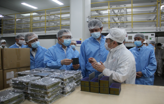 上午10時30分,市領導來到我錦州陽光能源有限公司全資子公司錦州創(chuàng)惠新能源有限公司,走進生產車間現場瞭解企業(yè)年產1GW高效太陽能元件數位化車間專案相關情況。我公司總經理張海陪同市領導一行,張總介紹:該專案達產後,可實現15億元的銷售收入,並作為東北地區(qū)領先智慧工廠帶動同行業(yè),完成再生能源佈局優(yōu)化和提質增效,加快推動企業(yè)向清潔低碳模式轉變。