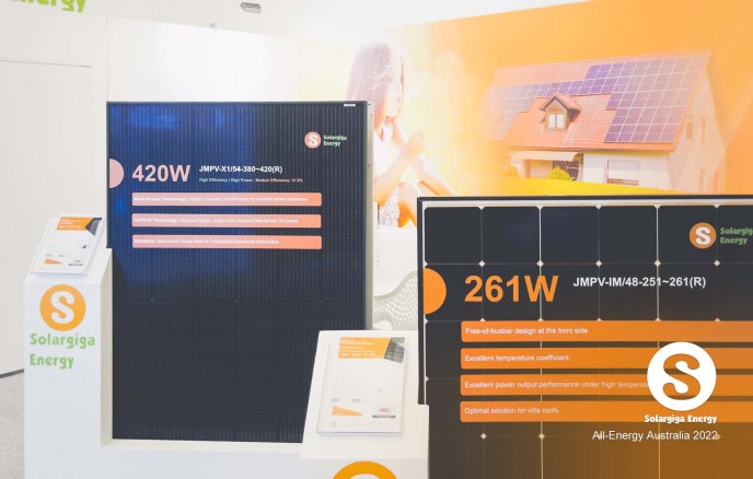 多年來,陽光能源不僅致力於組件研發(fā)和生產技術的改進,還對工商業(yè)分布式組件產品有著更高標準的美學追求。本屆展會,陽光能源充分考慮澳大利亞能源市場需求,帶來了應用於工商業(yè)分布式的182PERC雙玻54半片組件和182N型-TOPCon單玻54常規(guī)組件,以及應用於高端住宅的IBC組件,吸引了眾多業(yè)內專業(yè)觀眾駐足欣賞,並有效地俘獲了一批潛在客戶。